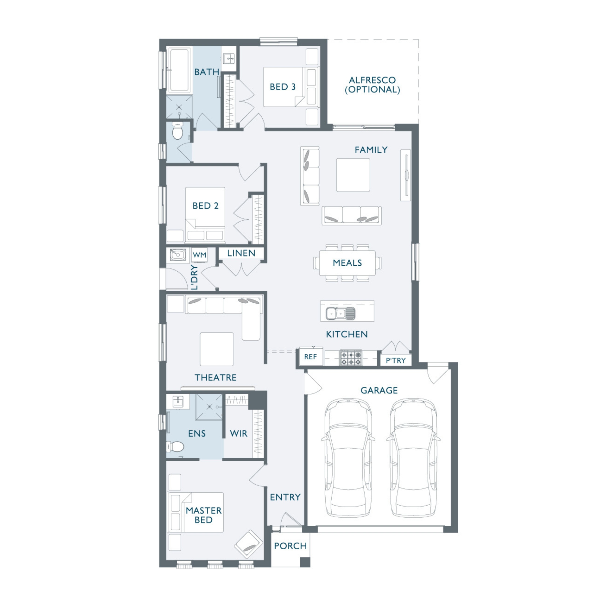 Pyrmont is where you enjoy the simple pleasures in life. Every aspect of the Pyrmont embraces relaxed living, including an open plan family area, well-appointed secondary bedrooms and an added theatre – the perfect retreat for you to enjoy.