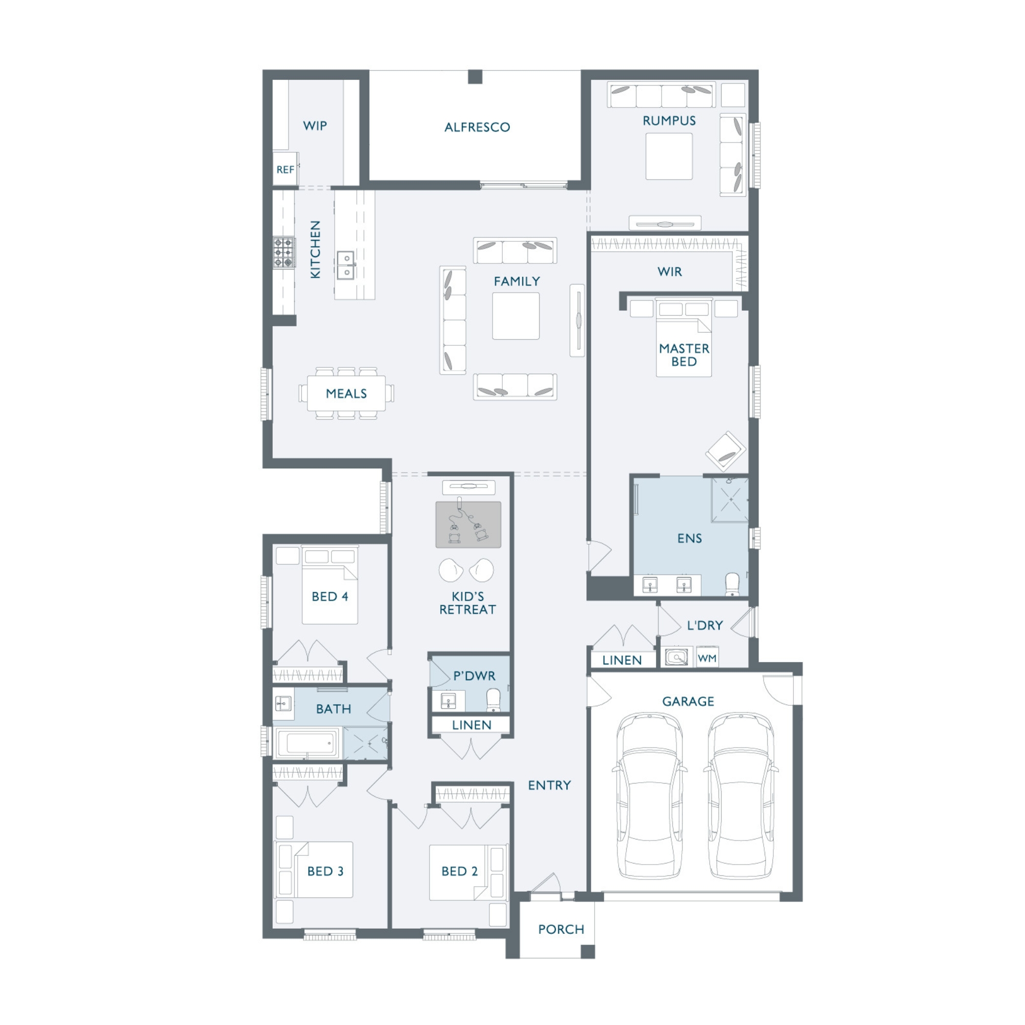 Henderson blends striking spatial aesthetics with functionality. The expressive entry is your first experience with its sweeping views onto the living room and beyond. Extensive open plan zones and the large family / alfresco area continue this sense of freedom and sophistication.